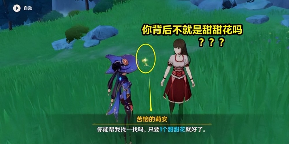 苦恼的莉安:可能大家早以忘记了这个突发任务,如果闲来无事去往蒙德城野外,就有可能触发该任务,没错,就是蒙德那个NPC莉安!