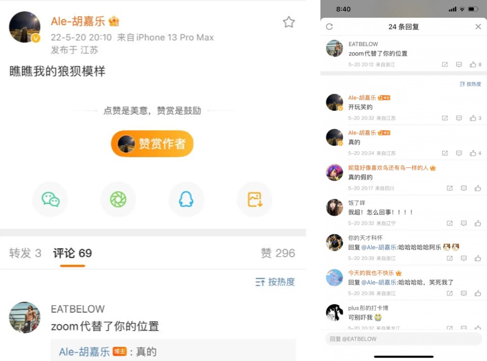 以Zoom的实力来说找到一个主力位置其实问题不大,更何况Ale这个春季赛的表现已经褪去了昔日和Bin并肩国产操作型上单天花板的光芒,LNG财力也完全足以拿下Zoom。不过Ale这条微博也有一种可能是因为感情受挫,毕竟今天是520。