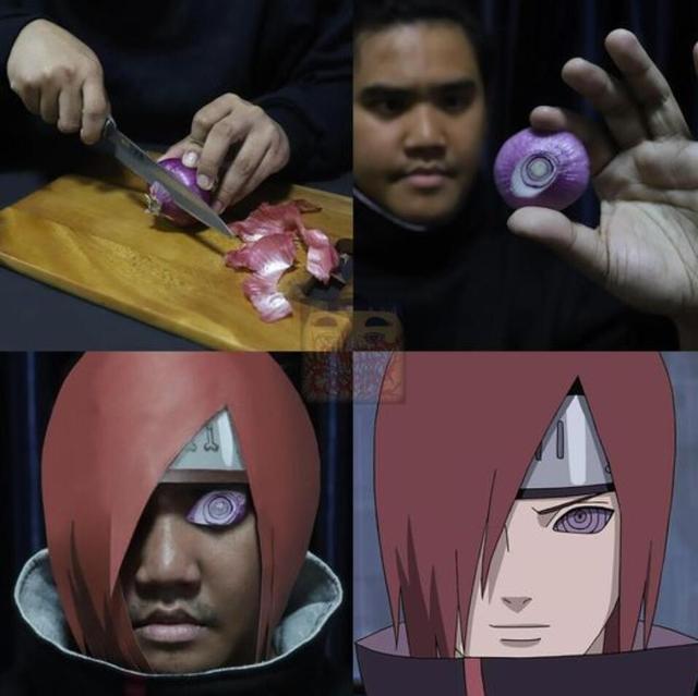 两根切开的葱,竟然就cos了正在使用白眼的宁次!
