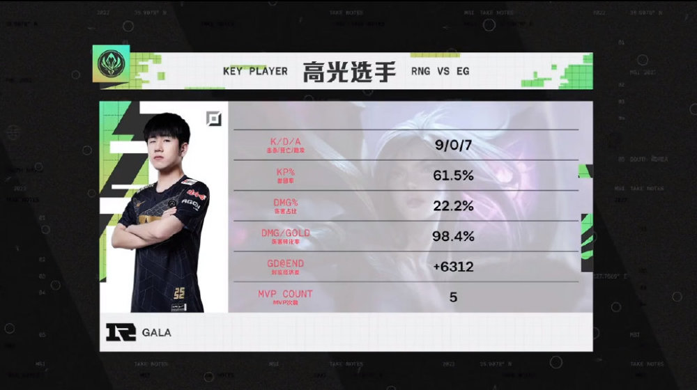 5月23日的MSI对抗赛,LPL代表队RNG是唯一一支全胜的队伍。虽然第一场差点输给SGB,但还是顺利获胜了。第二场迎战EG,是以摧枯拉朽的状态完美获胜。本日比赛结束以后,RNG以7胜1负的战绩率先晋级四强。