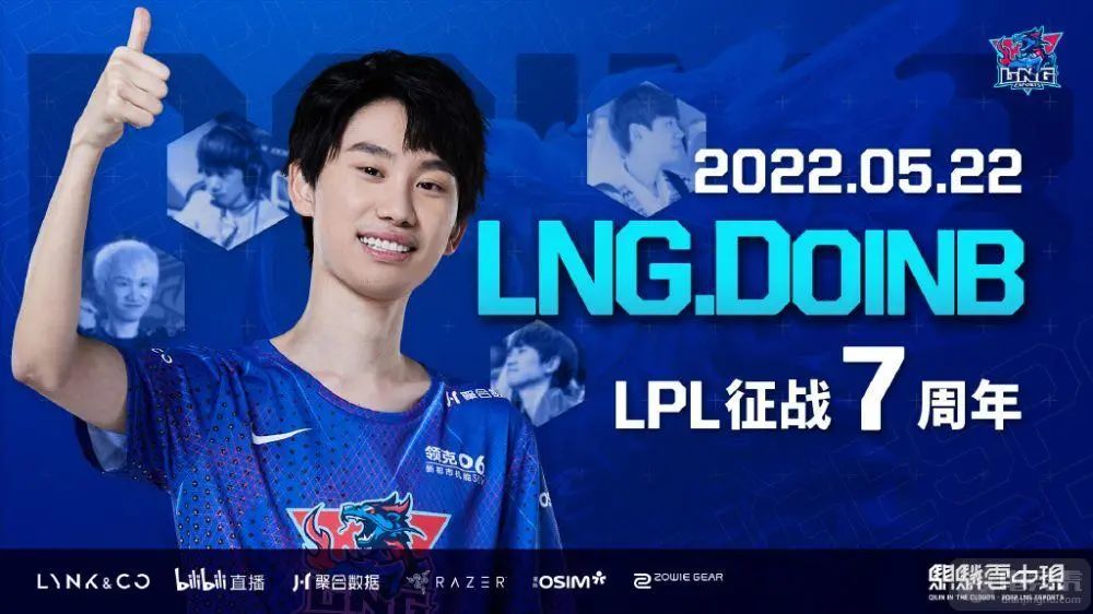 2022年5月22日是Doinb征战LPL七周年,LNG电子竞技俱乐部发文庆祝: