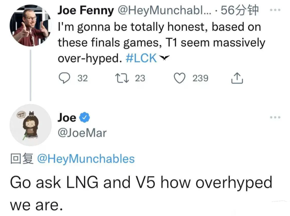 那个时候LNG和V5都是LPL成绩非常靠前的队伍,尤其是V5,大家都知道,常规赛第一。能够得到这样两个对手的认可,那么T1好像的确很强。