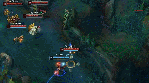 比赛的前期阶段EG战队是绕后GANK了一波格温,差一点将格温击杀,当时的情况是impact没有选择跟闪现,如果跟闪的话很可能就能完成击杀。