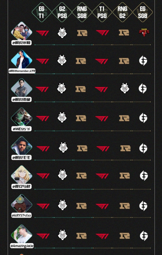 另外,再从G2与RNG在对抗赛阶段的表现来看,G2的竞技状态无疑是更加出色的。虽说RNG与T1这一场比赛也是让人感受到了RNG已经将状态调整至最佳,但面对这样的G2还真的不太好说。所以,从自己开始的预测以及现阶段G2的竞技状态,雨童这样的预测倒也无可厚非的了。