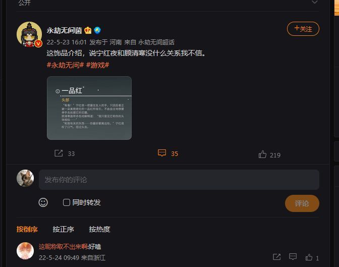 有趣的是,虽然《守望先锋》官方乱搞CP导致了很多差评。但同样的“官方下场撮合CP”行为,国产武侠风动作游戏《永劫无间》的官方,却被喊成了官方“发糖”,甚至还有玩家质疑是不是有CP粉“入职”了,评论区也是一片欢乐祥和,这到底是怎么回事呢?