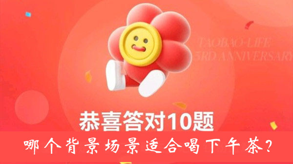 淘宝人生“桃仁300”的问答活动中每天都会有10道题目,只要答对一道题目就可以得到兑换券,“哪个背景场景适合喝下午茶?”,大家知道这个题目的答案是什么吗?下面就和小编一起来看看这个活动的题目答案吧。