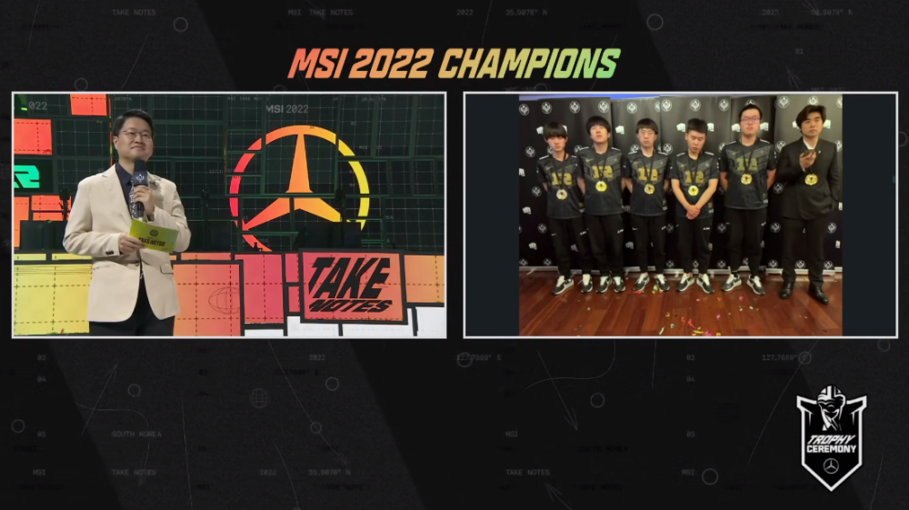 决赛结束后,RNG队员获得FMVP。主持人算是最敬业的人,用中文说了句“恭喜”,全程努力调动气氛、给RNG送祝福。可惜台下观众不买账,大家都是来支持T1的,输比赛后LCK观众齐齐离开,等颁发FMVP时已经没人了。