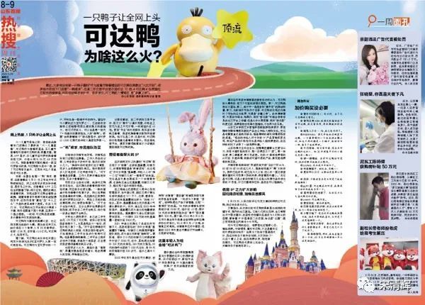文章指出,此次走红的可达鸭玩具彰显出独特的传播方式、强烈的社交属性。它被人们玩出花样,当它频繁出没于朋友圈中、在裂变式传播中迅速成为人们热议的话题,意味着IP价值得到二次挖掘,知名度“出圈”,随之而来的商业利润也十分可观。