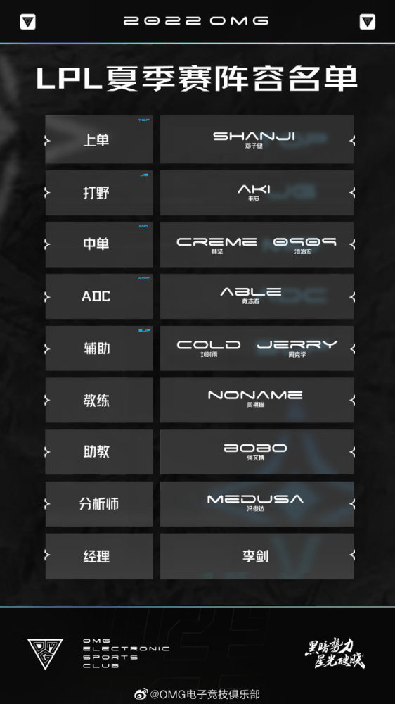 辅助:OMG.COLD(刘时雨)、OMG.Jerry(周克学)