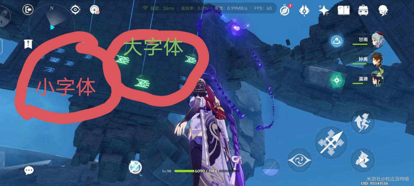 把踩完小字体的平台上的怪清掉后就会往这个平面对面的平面印射大字体如图