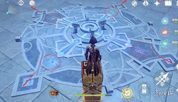 1-点亮地上的文字:在地上找到类似于“武”的文字,踩上去点亮文字,如果踩错会受到伤害(套盾可免疫伤害)。
