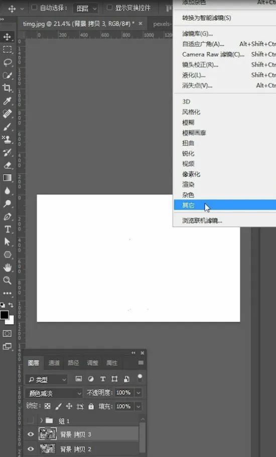第三步,在菜单栏的滤镜中找到其他,选择最小值,数值设置为2就可以了。