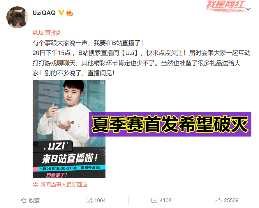 然而就在前不久,BLG就宣布Uzi加入了B站直播,当时这一个消息几乎让所有人都认为,Uzi夏季赛应该是能够首发了,毕竟BLG不光签下了Uzi,还拿到了Uzi的直播。