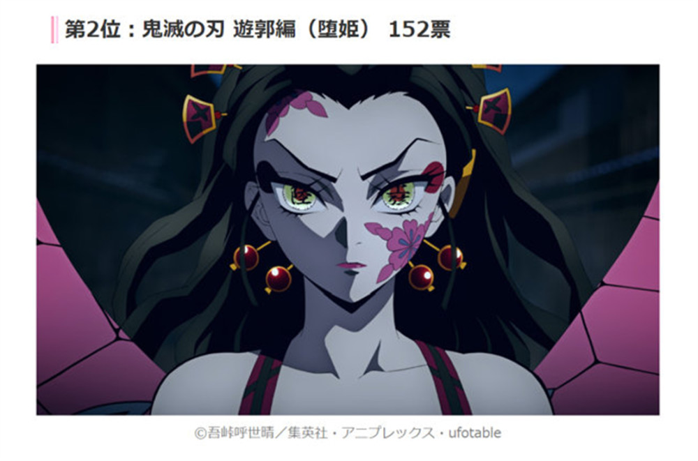 网友评选出来的堕姬成为了泽城美雪配音声优的第二名,这也得益于《鬼灭之刃》这部作品的大火。在5月29日早见沙织生日举办的配音角色TOP10评选中蝴蝶忍就霸占了第一的位置,可想而知《鬼灭之刃》这部作品带火了多少动漫角色。