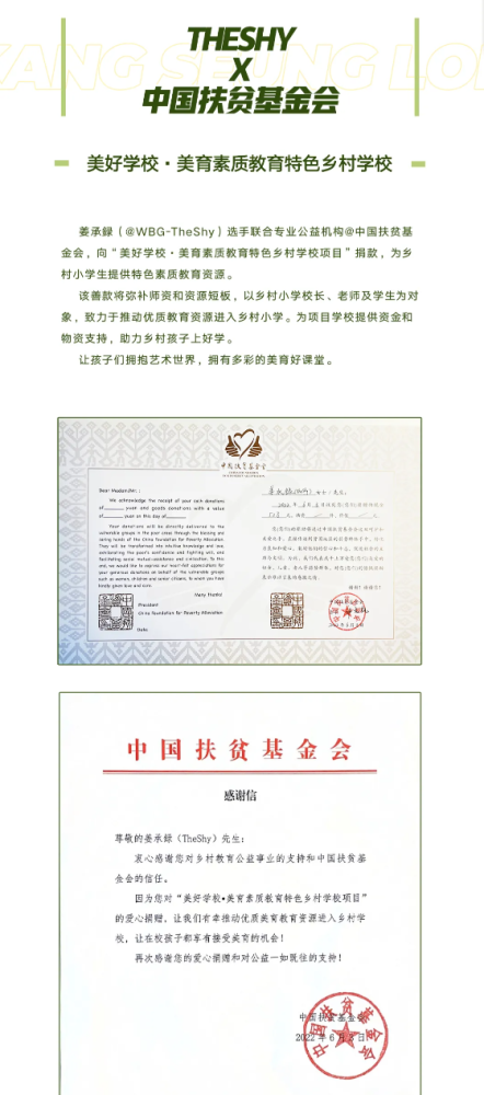 而在五周年纪念日这一天,TheShy做了一件非常有意义的事情——TheShy携手专业公益机构捐款52万元:关注儿童的健康与教育。52万这个数目,可以说是非常高了,堪比国内二线明星的水平。而TheShy的这波操作,也是让网友们直呼太暖心,TheShy不仅游戏打得好,人还那么暖心,实在是值得我们观众称赞以及学习。而这并不是TheShy第一次做善事,TheShy一直都有为中国以及韩国捐款。