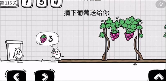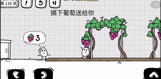 茶叶蛋大冒险中有很多的关卡,不少玩家都来到了第116关,本关卡的提示是“摘下葡萄送给你”,本关需要摘下三串葡萄给女友,接下来小编就给玩家们带来了第116关通关攻略,感兴趣的小伙伴一起来了解一下吧。