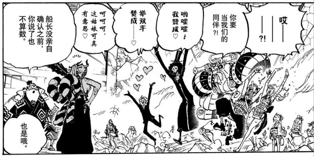 说回“第十人”。抛开宏观层面,单就这一话的发展来看,我确实认为大和上船可能性很高,因为短短的两句对话,已经让他融入了草帽一伙。