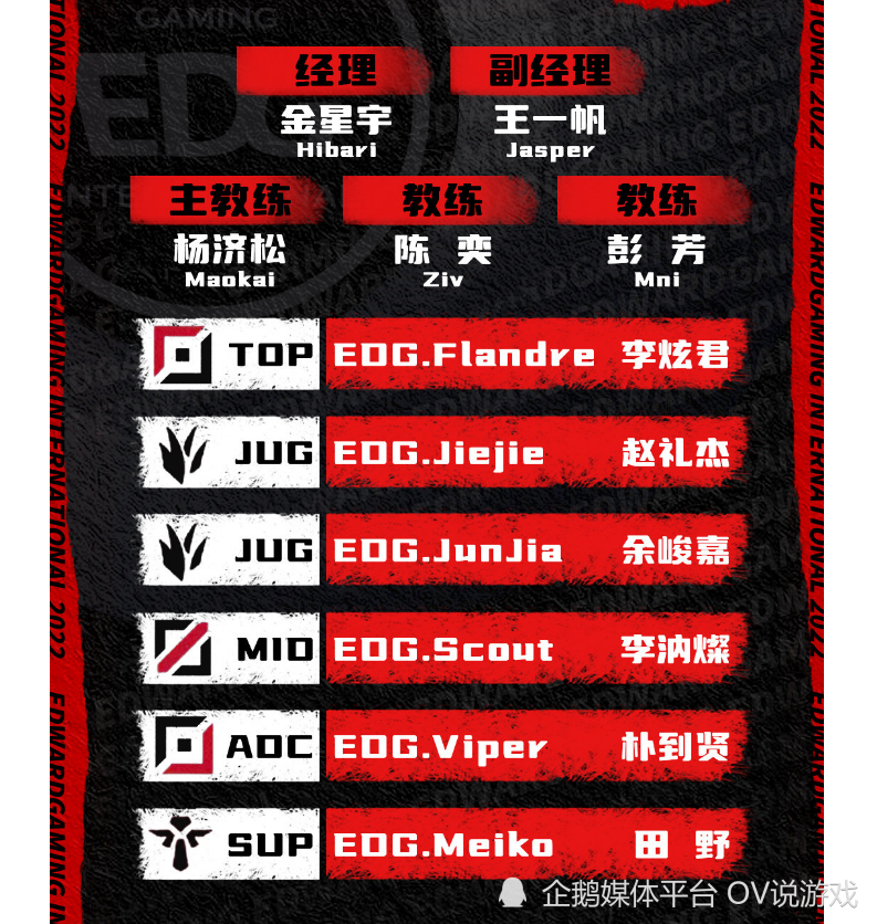 EDG在前几天也公布了他们的夏季赛大名单,只不过相比那些在春季赛大杀四方的战队而言,EDG受到的关注似乎远不如S11之后那般了。要知道S11夺冠后,EDG宣布他们保留“冠军阵容”后,很多人都觉得他们就是LPL最强战队,会在2022年从春季赛一路杀到S12,甚至再拿一座奖杯回来!