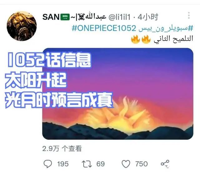 如今阿拉伯情报师提供一张太阳从东边升起来的gif图,暗示了接下来要更新的1052话的剧情画面,看到这一幕小蜘蛛瞬间联想到光月时所说的【九影投来日东升】。