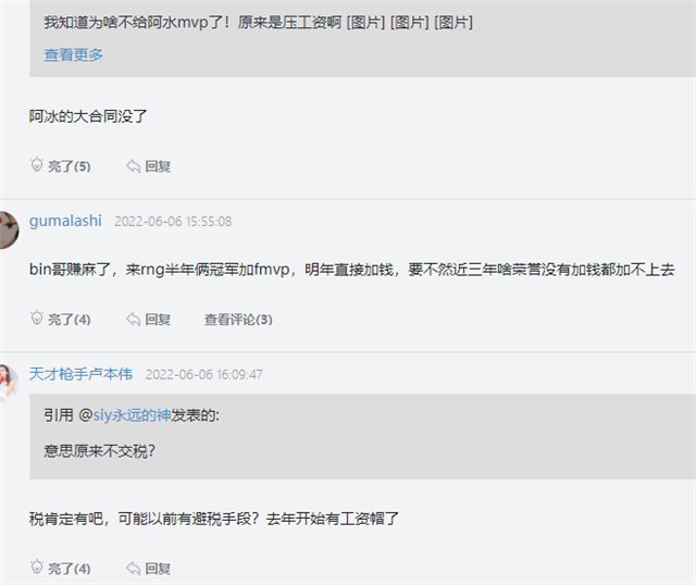 阿布表示,这个算法是s11赛季末发布的,非常复杂。当时LPL各大战队争左手,还给faker报了很高年薪,的确需要一套工资帽规则约束一下。看到这个消息大家吐槽:难怪联盟一直不给阿水mvp,最经典的是上次季后赛theshy一场三个mvp,TES赢了好几场阿水也没有mvp。粉丝自我安慰mvp没用,现在才知道个人荣誉跟年薪挂钩,此举可以压低选手工资。