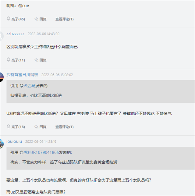 乌兹这种高人气选手必须谨慎。复出事件影响太大,一不小心就影响热度。乌兹在BLG复出后,战队吸走他很多人气,最后把选手一脚踢开、赶去直播。