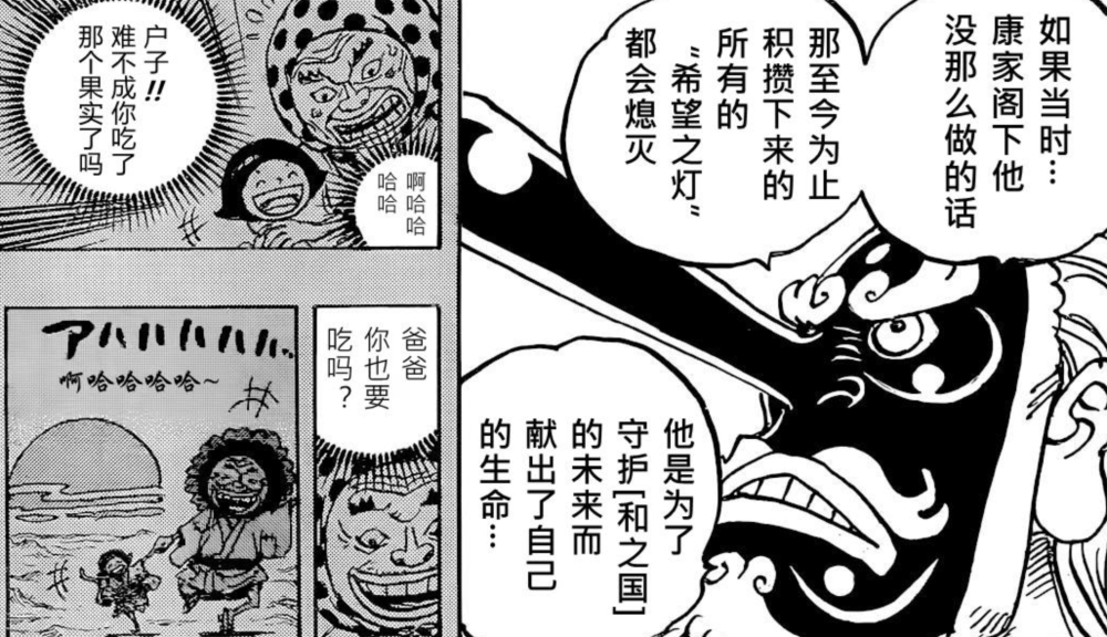 在1050话飞徹的一番话以及小南子回忆里面的康家主动吃人造果实,与女儿一起欢笑的举动,同样感动到我,让小蜘蛛感受到康家的爱国情怀以及陪伴女儿一起笑哈哈,他是伟大的武士。
