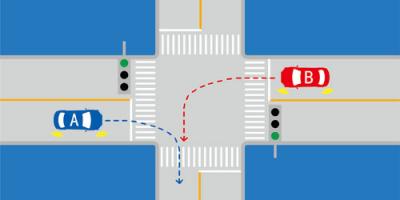 如图所示,A车县有优先通行权。