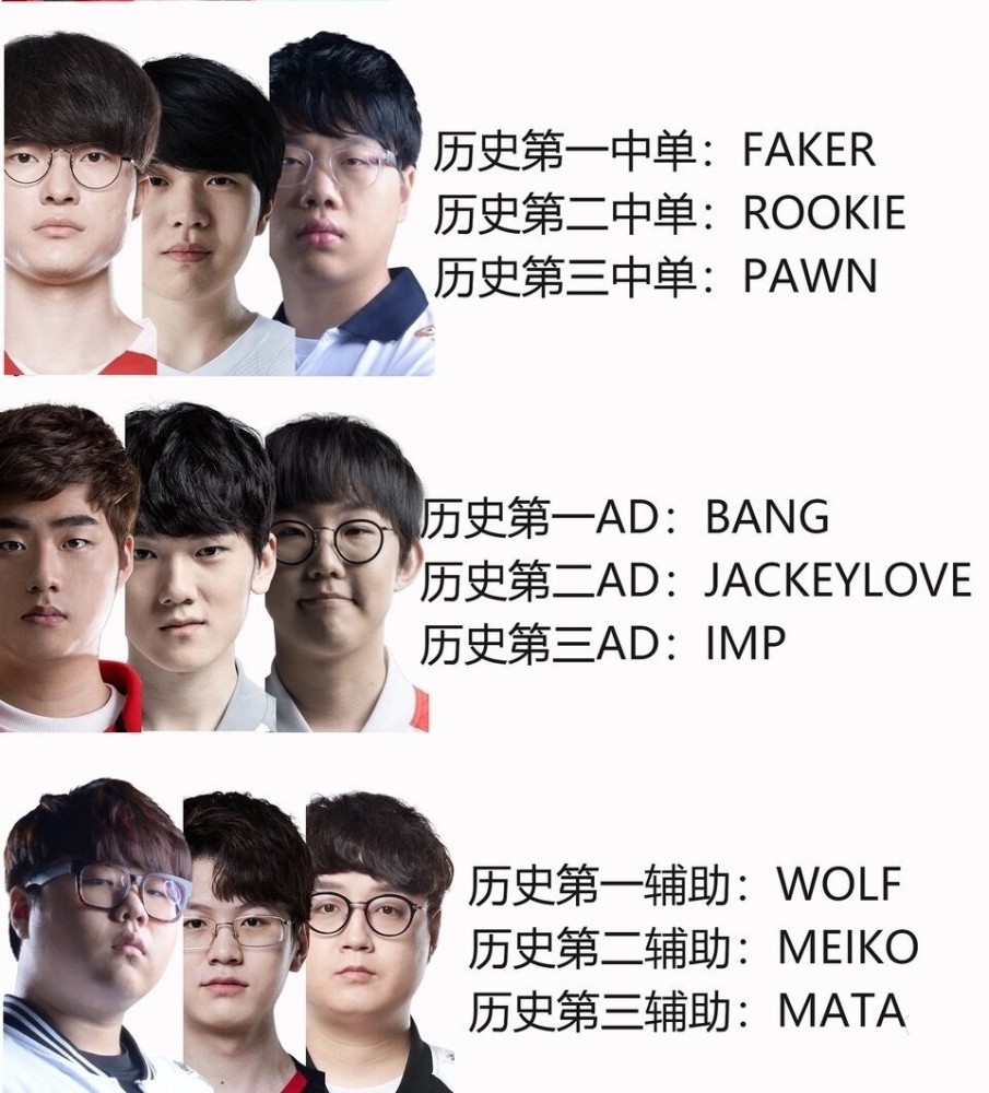在最近韩媒就评选了一个各个位置选手的历史排名,只排出前三的选手,因为LCK家底比较厚,因此韩国选手的入选比重还是更高一些。