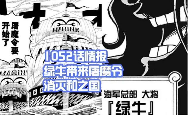 通过第一次更新的文字情报,我们得知了1052话结尾出现了一名海军大将,便是依旧不肯露面的【绿牛】,他来和之国干什么呢?情报师透露出新的信息!