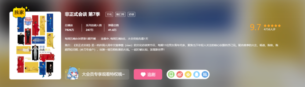 最近,B站的一档综艺节目,《非正式会谈》的第七季开播了,这是一个由各国年轻人作为嘉宾,一起聊天,讨论时事热点话题、交流各地风土人情的谈话类综艺节目。