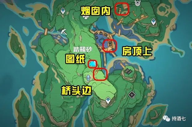 烟囱内的宝箱找起来复杂一些。我们可以在神无冢七天神像处,往南走。不远处,会看到矮悬崖下方,有一个木制滑轮车。车旁边是一个废弃的烟囱,还有一个雷属性结界。