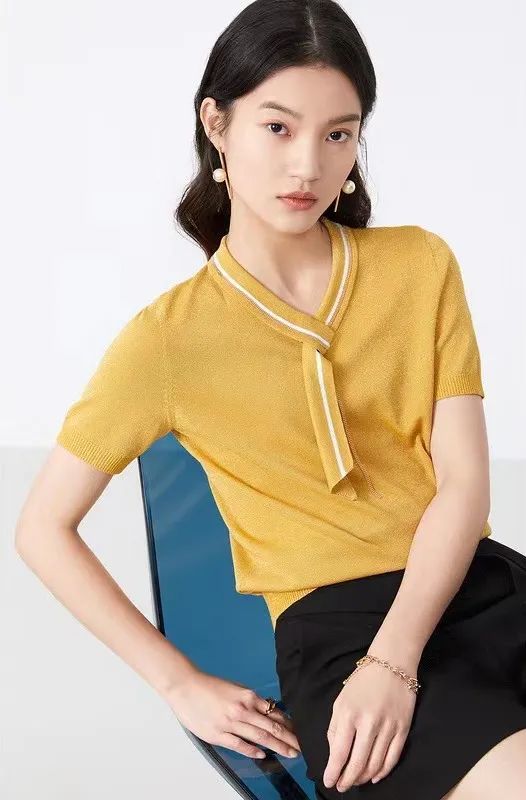 黄与黑的搭配更加沉稳、内敛,黑色把黄色的跳脱压下去一些,给人增加优雅成熟的气场,不仅适合职业装,日常搭配也可以有清新活力又稳重之感。黄色上衣搭配黑色的裤装或裙装更显优雅女性气质。