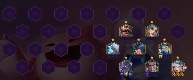 1、北地寒冰阵容选择寒冰,丽桑卓、布隆、维鲁斯、狗熊、火男、冰鸟、猪妹组成3元素使6北地2护卫2仙灵的羁绊;