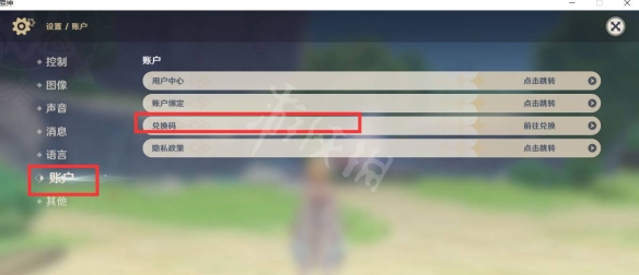 3、在设置界面中,点击进入账号界面,就可以看见兑换码