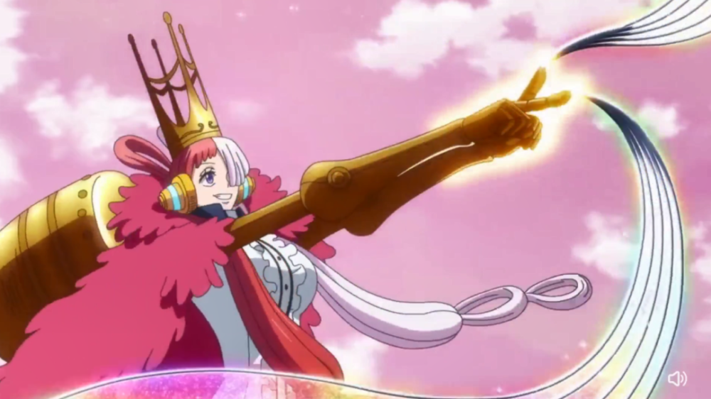 歌姬在战斗的时候,还穿着战甲,头戴皇冠,这难道是战场女武神,话说这个皇冠有点眼熟,不就是伊姆的剪影,难道说香克斯的老婆是...