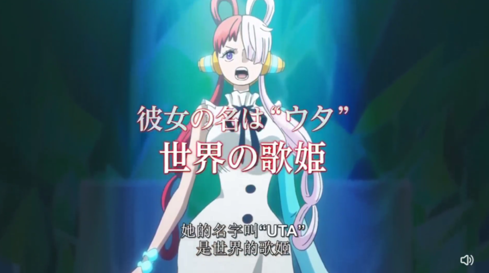 先来说下歌姬与路飞的关系,歌姬名叫【UYA】,在第一个PV里就给我们透露她是香克斯的女儿,但在很小的时候就和香克斯分开,理由不是很清楚,极大可能是香克斯作为海贼,不方便带着孩子冒险吧,于是把歌姬交给了一位老人!