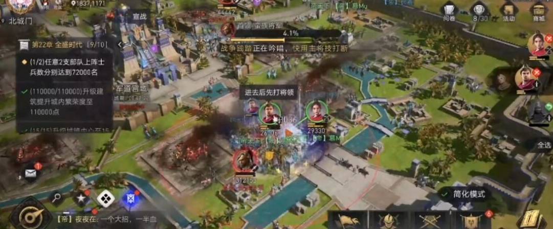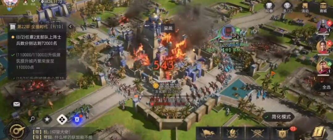 4、击杀完首领后直接去围攻宫城就行,宫城非常肉,需要打很久,但是只要人集合起来,围着一直打,就可以省很多时间。