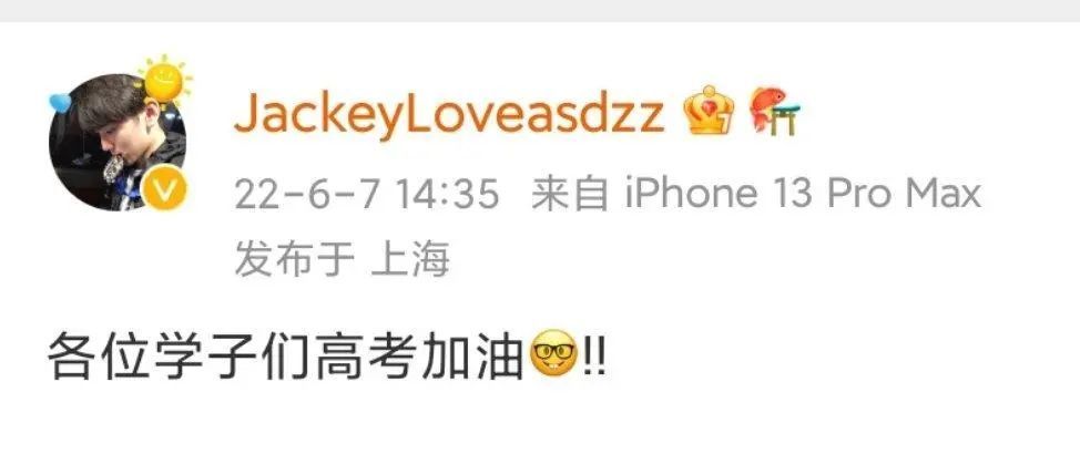 Uzi:“祝2022所有考生都能考出最好水平,一定要注意时间把控哦。还要特别对上海考生说,延期不可怕,放松心态,咱们稳住,2022高考加油!”