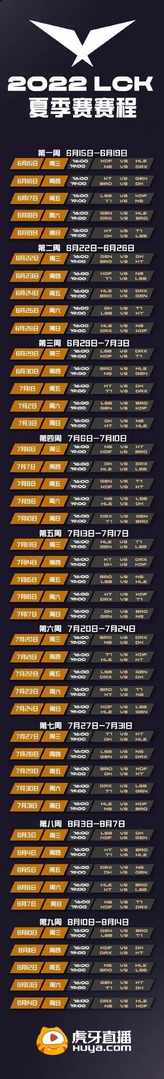 LCK发布2022LCK夏季赛赛程