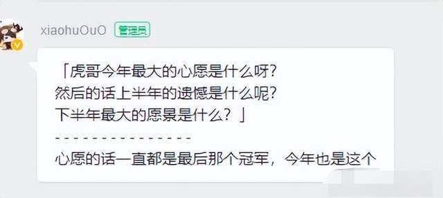 距离RNG夺冠已经过去一周时间,MSI结束后他们也终于有了宝贵的休息时间,LPL官方也贴心的将RNG赛程延后。假期在RNG俱乐部赞助商的安排下,组织了一场线上粉丝群提问的活动,在群内小虎也是回答了一些粉丝关心的问题,其中就聊到了自己今年最大的心愿。