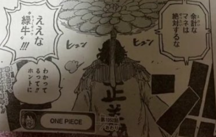 虽然本话中,绿牛依旧没有给出观众的正脸,而是以背影的身份出现,但是作为前往和之国的海军大将,此番登场,毫无疑问必然是为了揭示绿牛的所有线索而展开,因此相信在接下来的几话中,绿牛的容貌将会真实地展现!