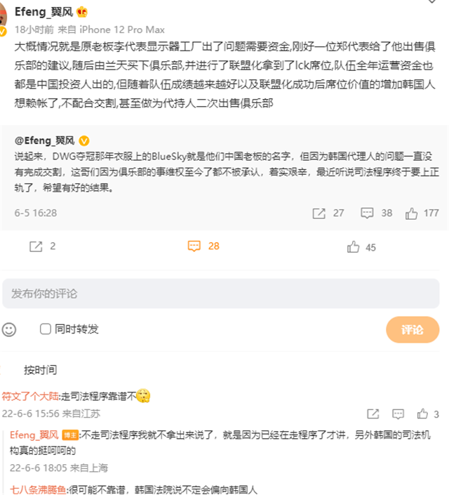 翼风解释了一番:那位卖显示器的李老板资金出问题,有人建议他卖掉战队。来自LPL赛区的兰天买下俱乐部,恰好当时LCK赛区联盟化,他顺利拿到了比赛席位,DK的运营资金也是兰天给的。PDD曾说有位朋友借他钱买DK,说的就是这位兰天。