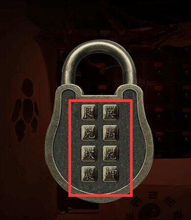 8、点击下图位置,出现一个八卦阵,线索在易经里。