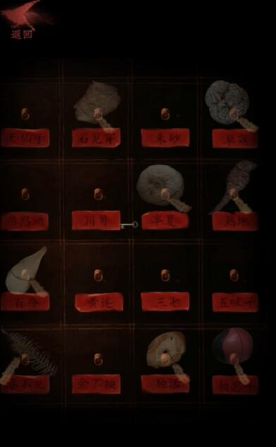 6、药材位置摆放如下图,然后获得钥匙。