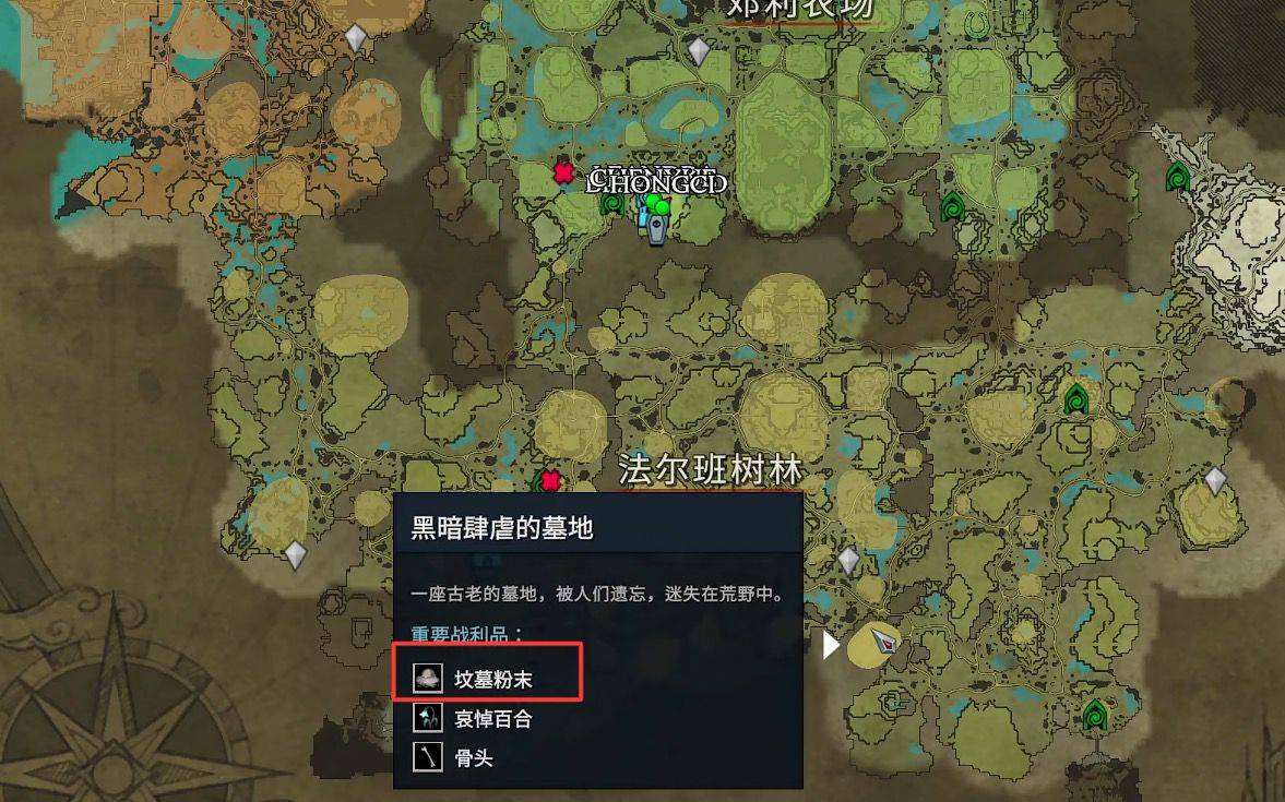 1、在V Rising中,坟墓粉末可以通过遗忘墓地里获取。