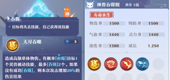 技能:无尽吞噬这个技能可以造成高额的但提升还,还有一定的几率吞噬灵兽的被动技能。