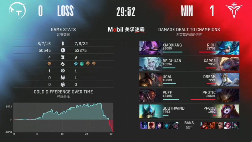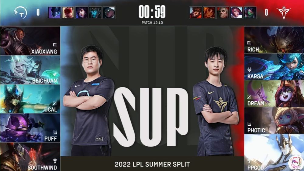 大嘴老鼠都是版本强势的ADC,此前老鼠已经在LPL的赛场上露面了,而大嘴迟迟没有人选择。作为在LPL很有梗的ADC选手,Photic在今天拿出了大嘴。V5的BP也几乎就是一套围绕大嘴的后期四保一阵容,格温和波比的双圈都是防突脸的,璐璐加里奥则是双重保护。TT则是节奏相反,是偏快的一套阵容,尤其是卢娜组合以及卡牌,在后期比起大嘴作用很小。