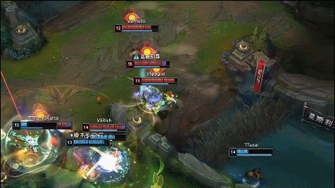 优势局面下TT就以Ucal为核心带动节奏,又是强行抓边线格温,V5中单选择TP支援,但格温还是率先阵亡,后续双方支援赶到,V5换掉一人,但是拿掉了听牌的小龙,这一局比赛中V5唯一的一个优势就是他们的小龙领先很大。