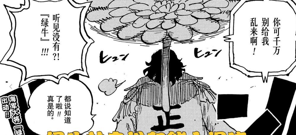 而除了天狗山飞彻以外,新任大将绿牛的身份和能力也在剧情中揭晓了。绿牛的名字叫荒牧(aramaki),他能够变出植物并且吸收他人身份的养分,剧情中他一到和之国就吸了KING和QUEEN身体的养分,也难怪他可以三年不吃饭,吸别人的养分就行了。