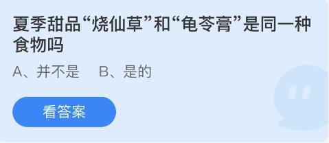 蚂蚁庄园6月17给大家带来了问题:【夏季甜品“烧仙草”和“龟苓膏”是同一食物吗?】,烧仙草和龟苓膏是两种不同的食物,接下来小编给这个问题带来了答案,感兴趣的小伙伴一起来了解一下吧。
